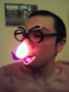 裸にパンスト、マスクを被り、チ●コに水道の蛇口が付いてます(笑)