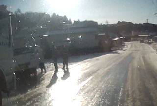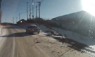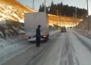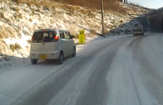 カーブ曲がりきれず田んぼに落ちた軽トラ。