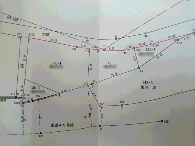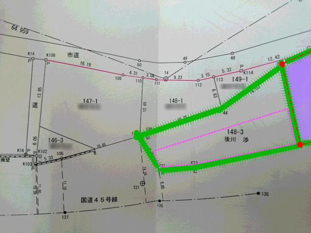 まぁ法務局にある公図で杭を指すべき境界は判明したんですが、