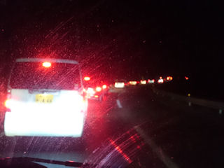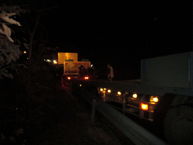 途中から大渋滞、先には無数の赤色回転灯。