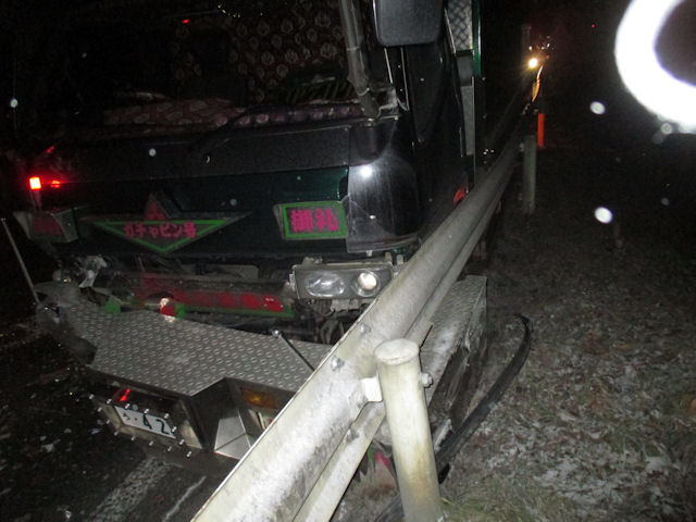 バンパーガードレールにはまっとる、