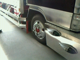 昨年末には主演の一番星桃次郎こと菅原文太さんの訃報。 そして、準主役とも言える一番星の相棒役「やもめのジョナサン」こと 愛川欽也さんがお亡くなりになったという一報が。 前にトラック野郎・一番星との出会いをブログに書いてますが、 こちらです。 非常に残念なお知らせであります。 我が家では毎晩トラック野郎のパチンコでワイワイガヤガヤな子供達ですが(^^; ご冥福をお祈り致しますm(_ _)m トラック繋がりで、昨日やっと工場開けて 積載車のタイヤ交換しました~。 今回はトラック担当整備士かつやに41mmのソケット頼まれてて、 なんとか用意はしたんですが、 変換ジョイントに変換ジョイント付けてやっと41mm。 重い重い(><) でも回るんか? 回らんし…。 結局手作業です(><) 竹ヤリマフラーじゃないっす、 テコの原理で単管パイプ抱かせて回してます(^^; しかもリヤはwタイヤ、片側タイヤ2本外さなきゃないという重労働。 運動不足のオッサンには重労働ですわ。 やっと外れました~。 外したついでにホイールマーカーのリングを作り直し、 装着・点灯ッス。 フロントはシングルタイヤなんで比較的簡単に終わり。 久々のメッキホイールが光ります☆ 半日掛かったな、今までは誰彼やってもらってたので、 ひとりでやったの初めてだったス。 久々の全灯ッス☆☆ リヤタイヤがスッ込んでんのでホイールマーカー目立ちませんが(^^; PR |