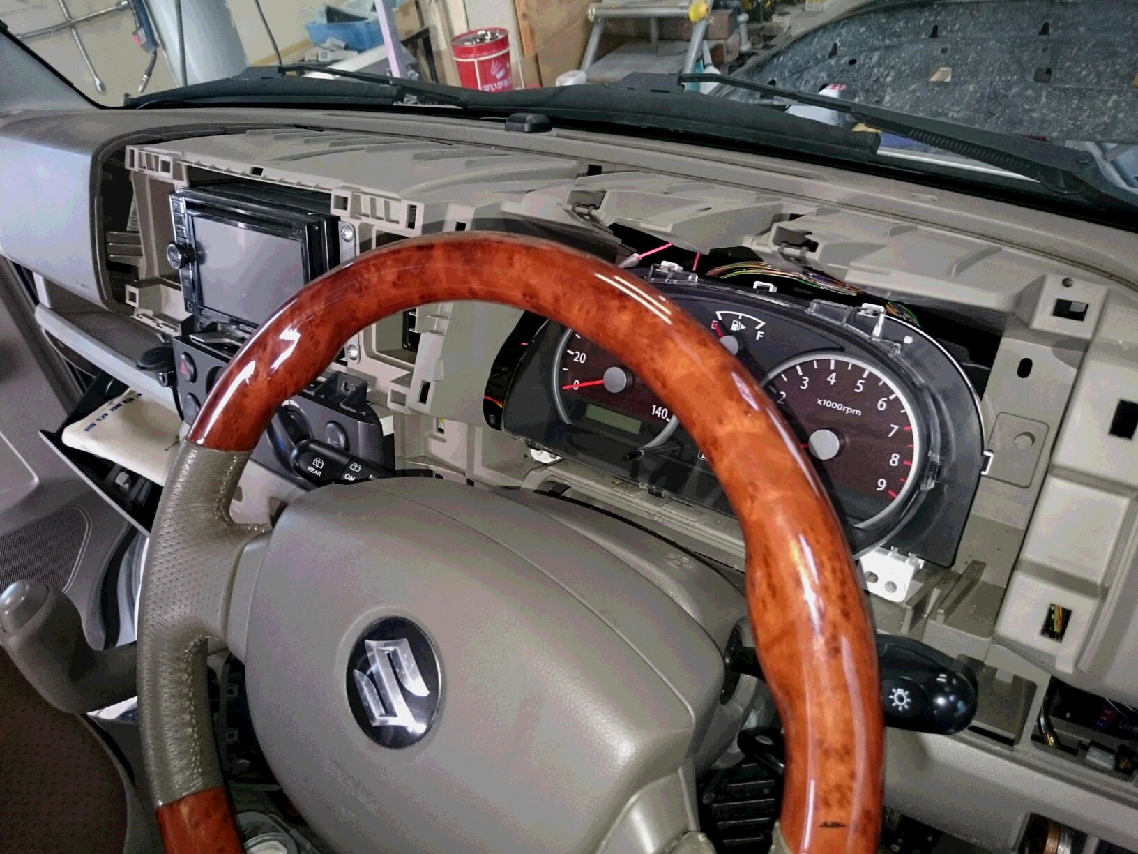 エンジンルームから配線を探してメーターまで引っ張ってきてと面倒な作業。
