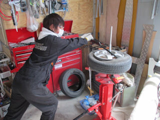 整備工場さんなどは夜も開いてるんで昼間タイヤ交換作業、