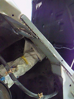 サイドメンバーには配線の他にボンネットオープナーワイヤー、ウオッシャーホースなど