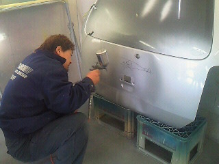それから実際調合をして塗装の実演です。