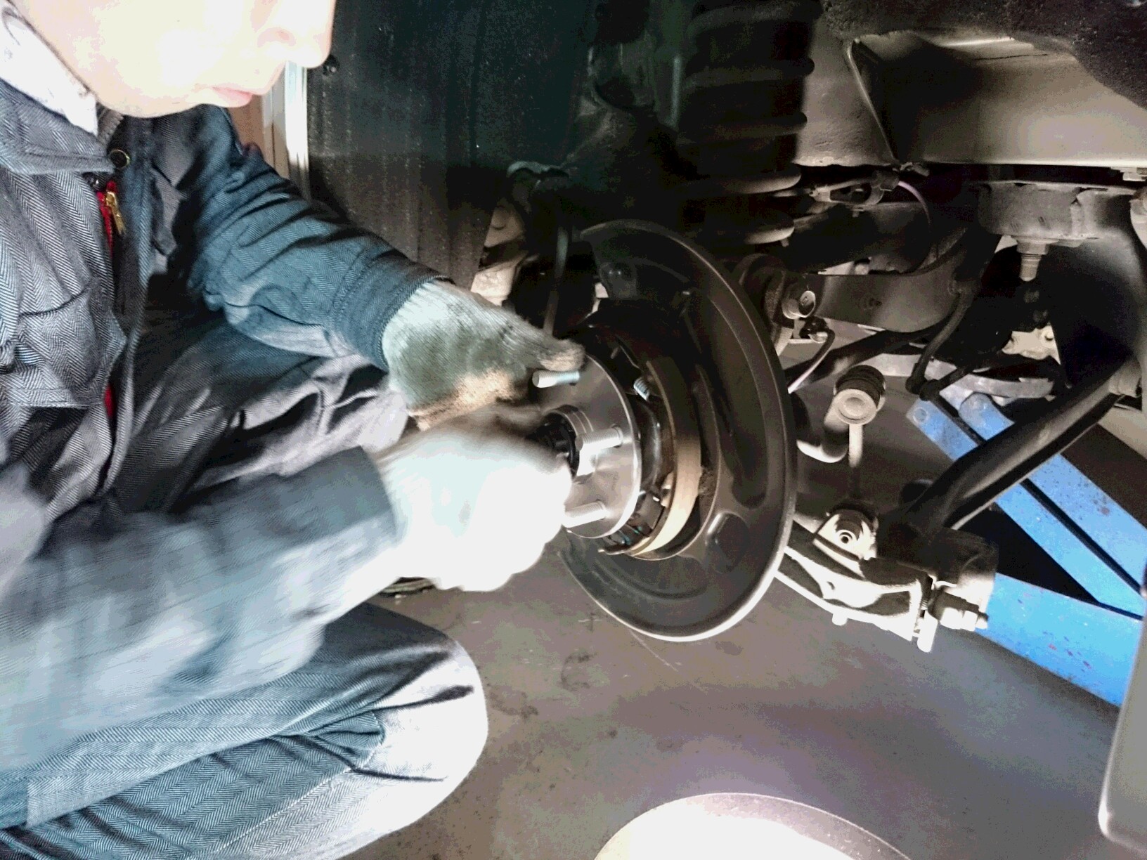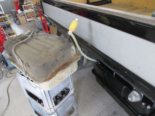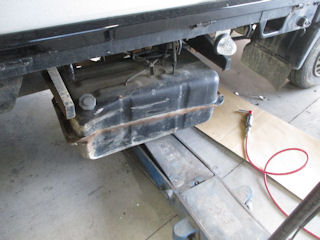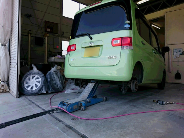 ジャッキ掛けて旧タンクを外します~。