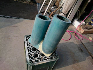 入口をクランクにしないとフレームに当たるんで加工。