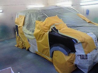 調色終えたら足付け(ペーパー掛け)してマスキング