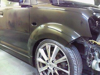 今回は前後フェンダー加工したekスポーツの塗装です。